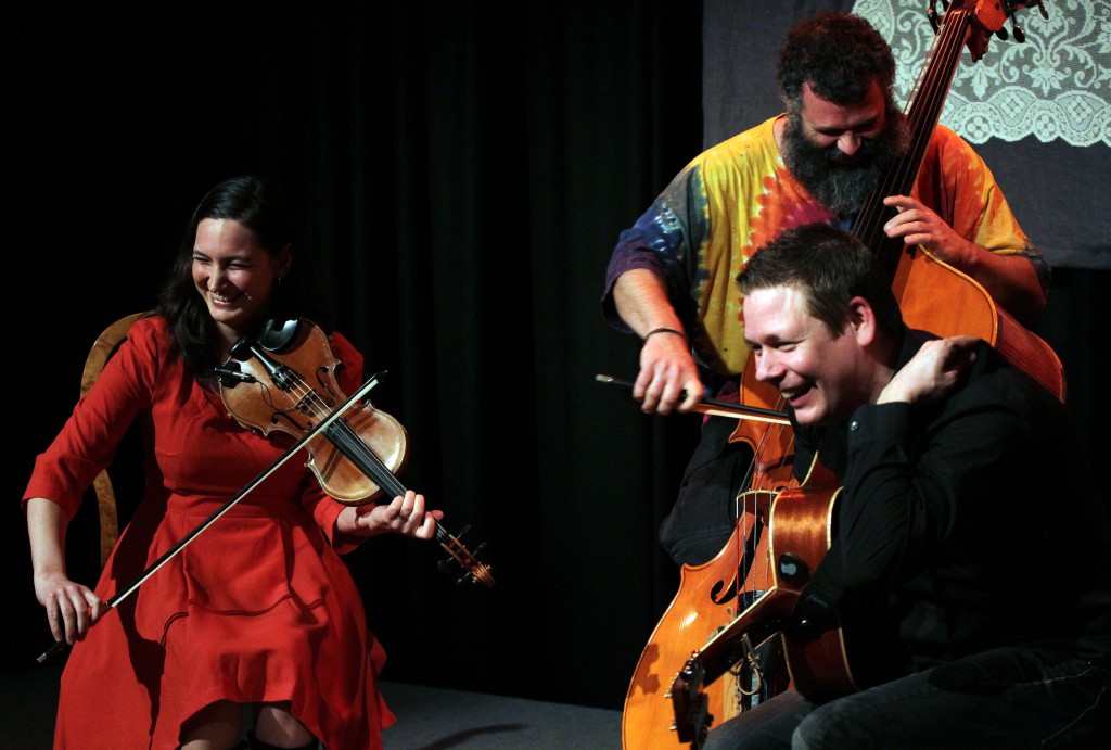 Evenemanget ersätts av liten konsert av Sophia och Magnus Stinnerbom (med på bilden men inte på konserten: Sébastien Dubé)